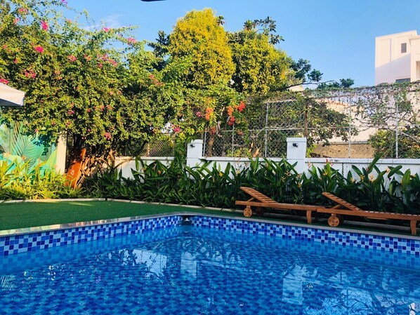 In the heart of the city, our villa is a 2-minute walk from your favorite shopping and dining spots. Enjoy a BBQ or birthday celebration by the pool surrounded by lush gardens and a vegetable garden.