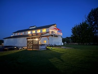 Three Thistles Barndominium in Walla Walla offers spectacular views from every window. Guests enjoy meals at the large dining table and relax on outdoor patios. This farm stay features on-site golfing and easy access to a water park for active days.