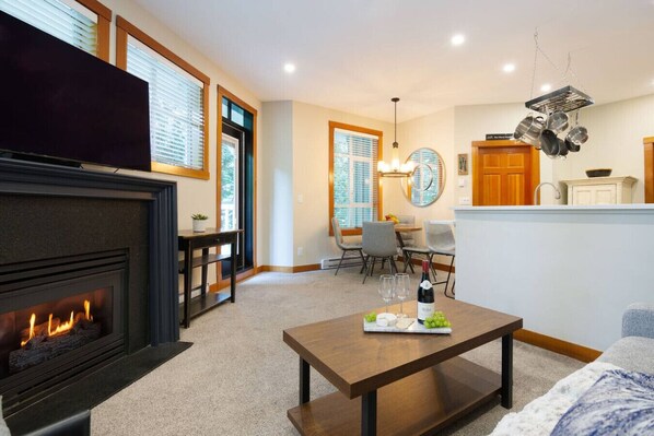 This beautiful, comfortable & fully stocked home for 6 is just far enough away to escape the village noise, but still steps to all the action! Only a minutes walk to the best shops, restaurants, & grocery stores. It is an 8 minute walk to the ski lifts or use the free shuttle that stops just outside the front door. Featuring free parking, in-suite laundry, a private patio with gas BBQ, TV & cable, cooking oils & spices, free coffee, & many other essentials to enjoy a fantastic Whistler escape!