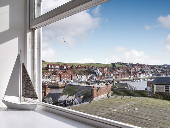 Bedroom 3: Kingsize (5ft) Bed Ensuite: Toilet (Only). Gas central heating, electricity, bed lined, towels and Wi-Fi included. Cot and highchair. . Public car park nearby (pay and display). No smoking.. This beautiful apartment is furnished to a very good standard with lots of personal touches which ensure you and your family have a truly memorable stay. This is a great choice for a family or group of friends on a seaside holiday. It’s well equipped with games, toys, DVDs and buckets and spades. The living area is bright and spacious, perfect for gathering around a board game in the evening, having a movie night together, or sharing in an indulgent home cooked meal after a day of exploring. You are in a peaceful elevated position above the ever popular coastal town of Whitby, with the most incredible views where you can take in the sights all around you. You’ll feel on top of the world, watching the waves, boats and scenery down below.