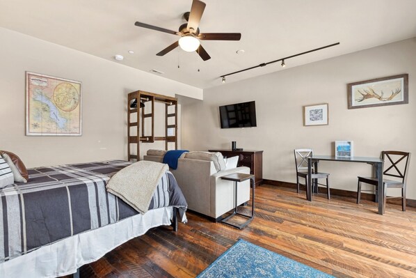 Studio Condo: Queen Bed, Queen Sleeper Sofa, Shared Bathroom with Shower/Tub Combination