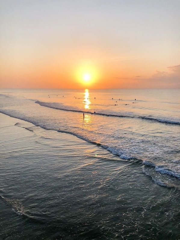 Sleeps 9 using the queen- sized pullout sofa in living room. Fenced in patio area to hangout or grill. Gas grill ready to BBQ Burgers or fresh Carolina Shrimp. Kitchen has everything needed for cooking and serving dinner at home. Washer & dryer located on the 1st floor and two beach cruiser bikes for your use. Comes with two parking spaces. Front door has electronic deadbolt with a code for easy access.