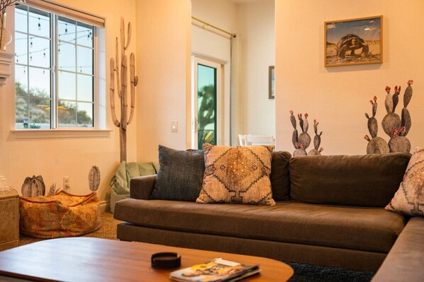 Escape to premier desert comfort in this spacious 4-bed, 2-bath villa with sweeping mountain views. Surrounded by boulders and wildlife, the home feels private yet is only 10 minutes from Joshua Tree National Park, 15 minutes from Pioneertown, and 5 minutes from shops and dining.
