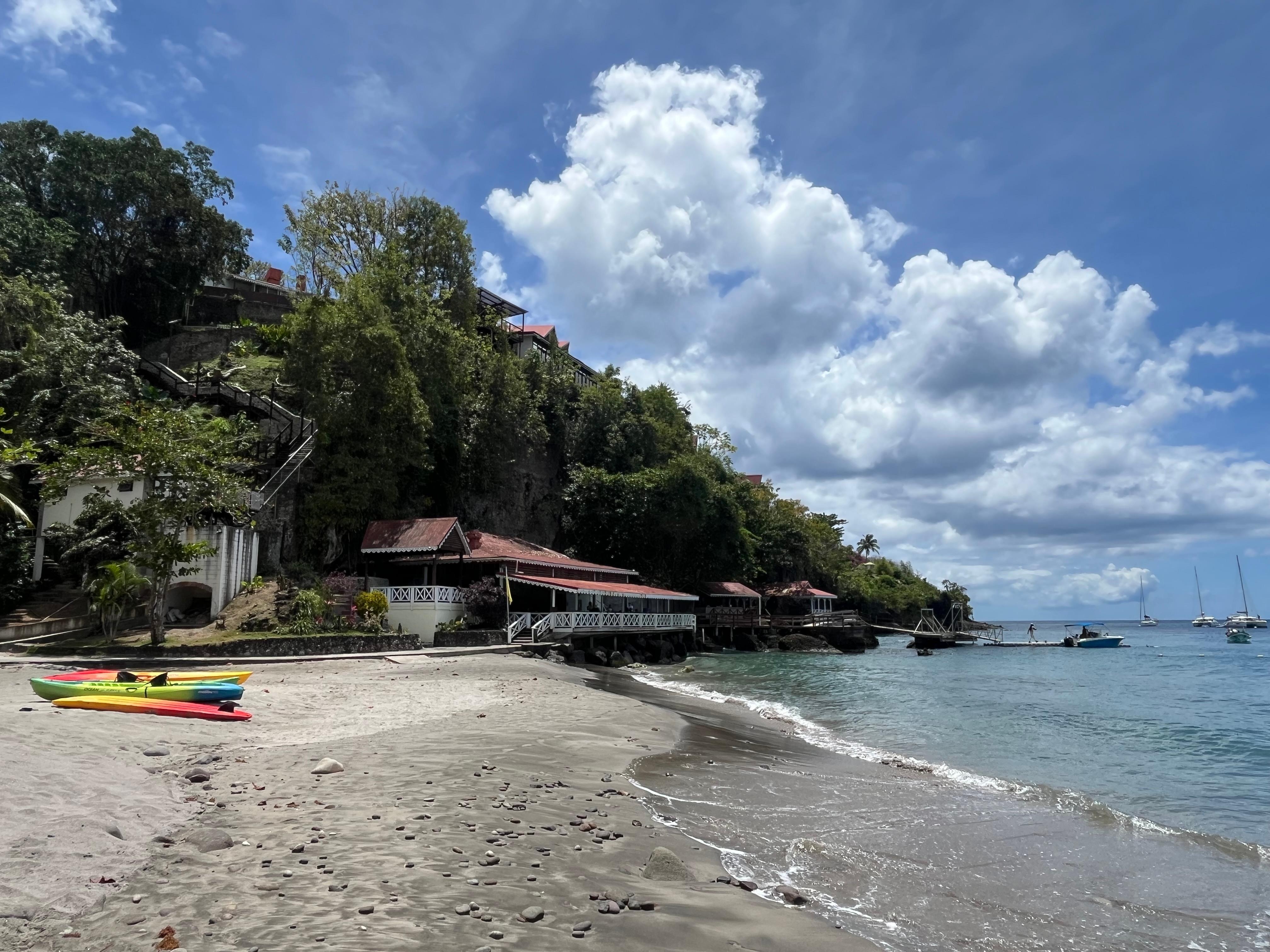 The beach is good, but there is a somewhat steady stream of party boats coming in and disgorging their tourist loads for swimming and snorkeling. It’s not the end of the world, and there’s a section of the beach reserved just for Ti Kaye, but the beach can go from extremely peaceful to definitely not (and then back again) in short order. Their pizzas at the beach restaurant are excellent.