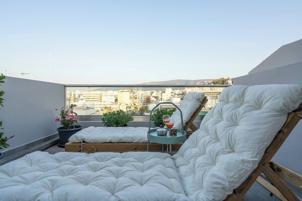 - 2 Balconies with Acropolis view and sun beds