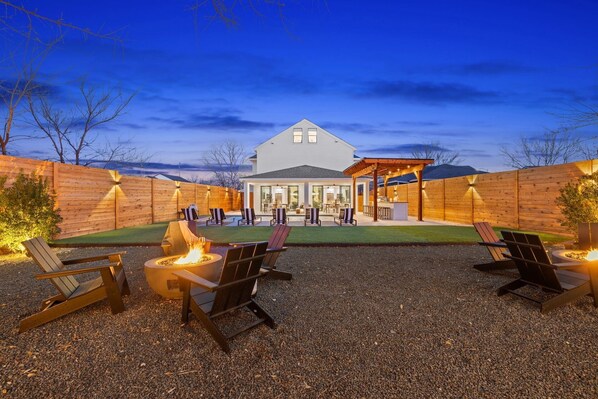 This contemporary duplex in East Austin can fit up to 17 guests with its 7 bedrooms, 4 bathrooms, and minutes from downtown Austin. With its ample amenities, including a shared outdoor area and a pool, this home is great for those exploring Austin. The professionally designed spaces offer open-concept layouts and kitchen & dining spaces perfect for entertaining.