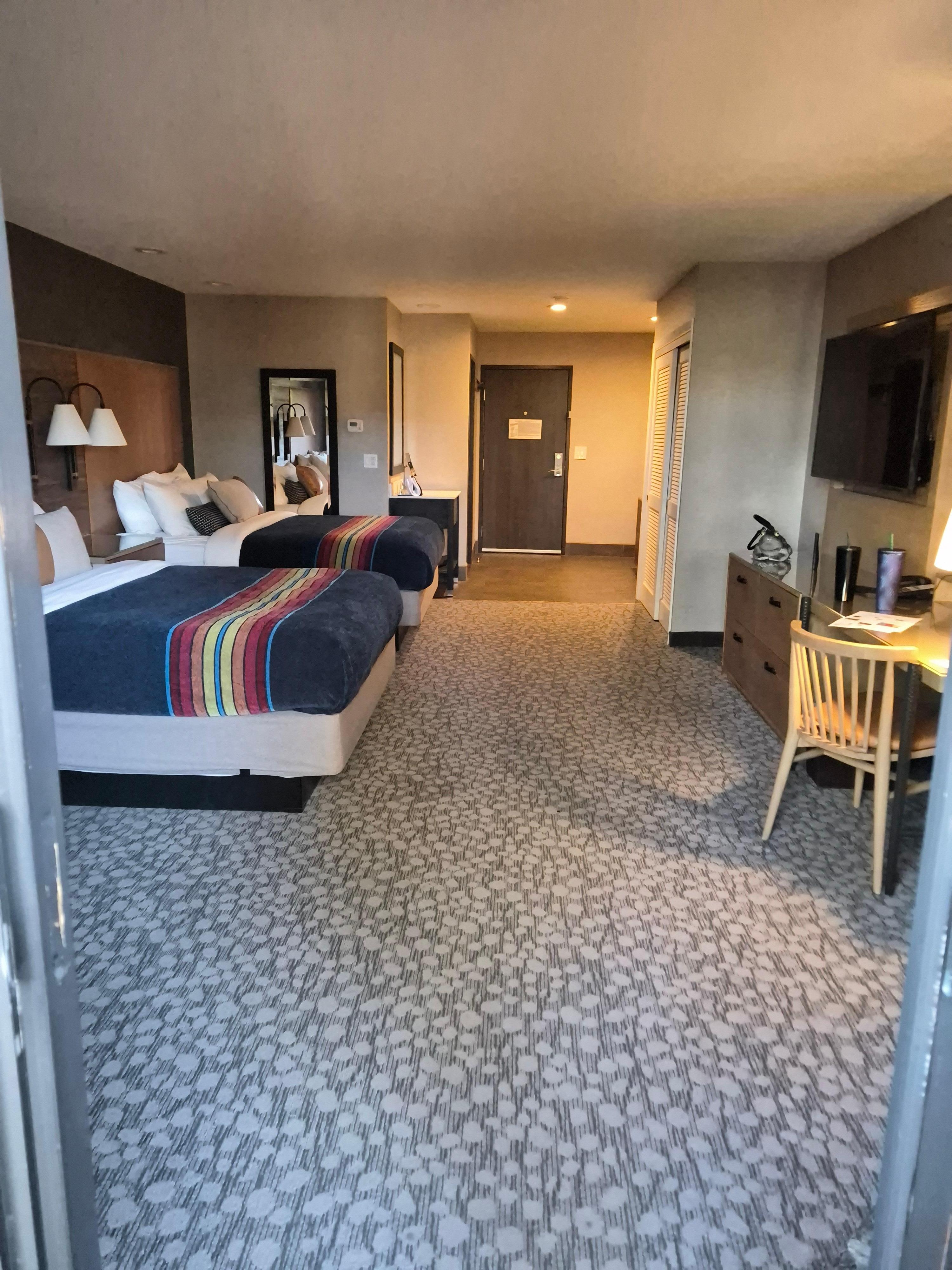The room was very spacious and comfortable and clean. The views were beautiful. The kids enjoyed the indoor pool. The bed could’ve been a little more comfortable, I think but overall, it was fine.