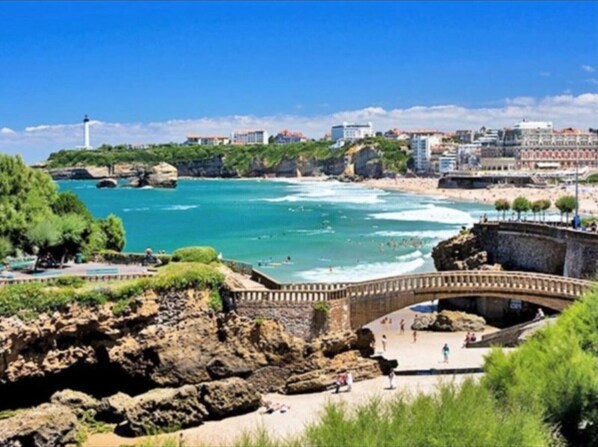 توجد هذه الشقة في قلب بياريت، على بُعد خطوات من شاطئ غراند وخليج بسكاي.كازينو باريير وشاطئ ميرامار أيضًا على بُعد 5 دقائق.