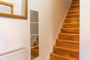 The house offers a modern, fully equipped kitchen complete with a sensor tap, filtered water system and soft water for a fresh and high-quality feel. Mealtimes are a pleasure in the well-lit dining room, featuring an extending dining table that can easily adapt to larger groups. The cozy living room with a smart TV provides the perfect spot to unwind, while the master bedroom also includes its own smart TV for added comfort.