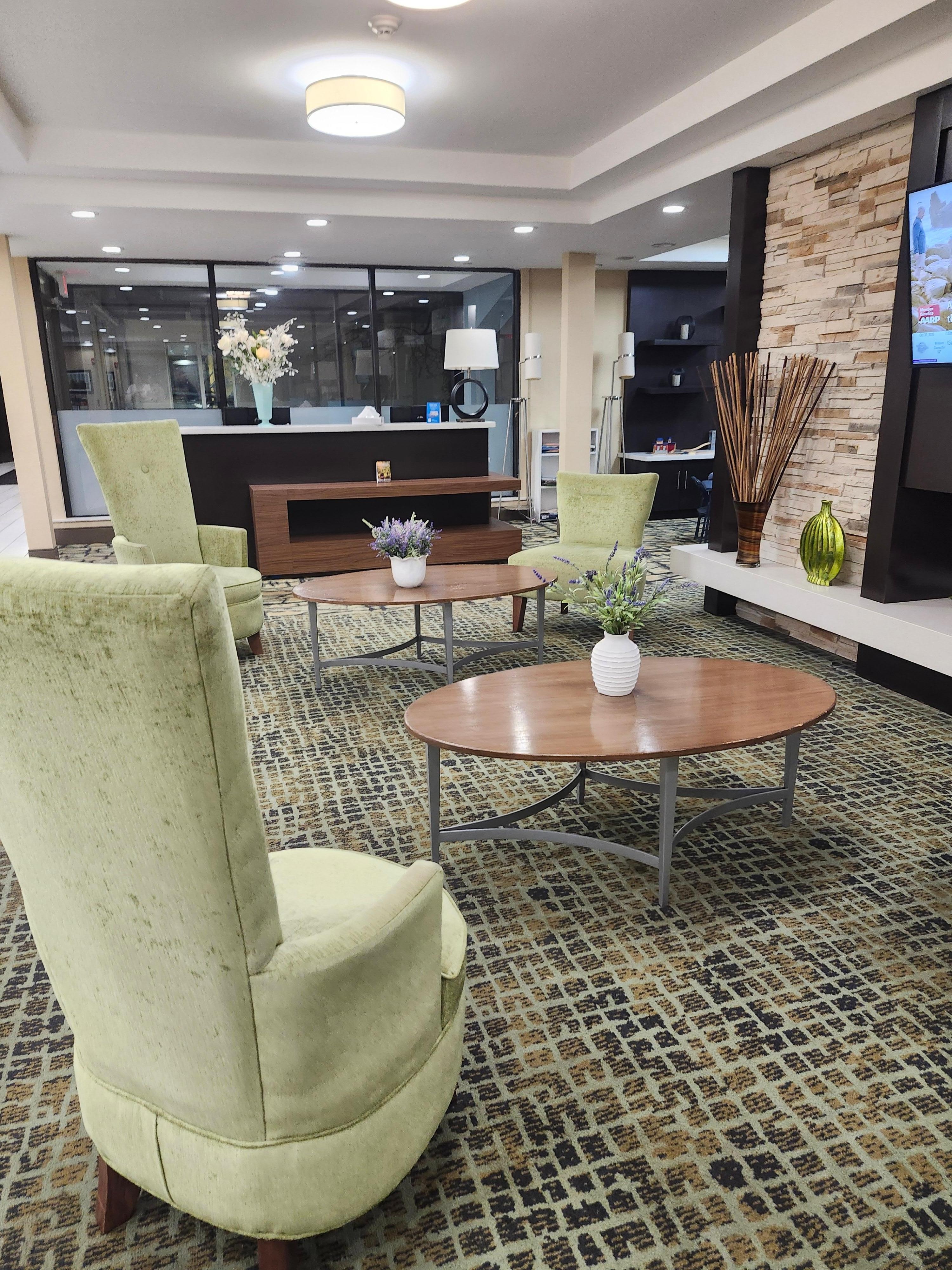 Suburban hotel with free breakfast and a 24-hour fitness center