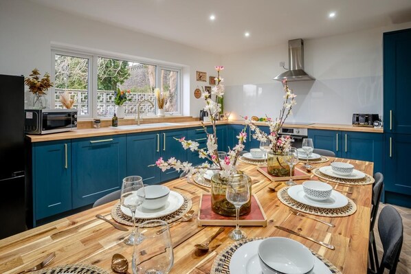- Electric oven and hob, microwave, fridge/freezer, washing machine, dishwasher, coffee machine