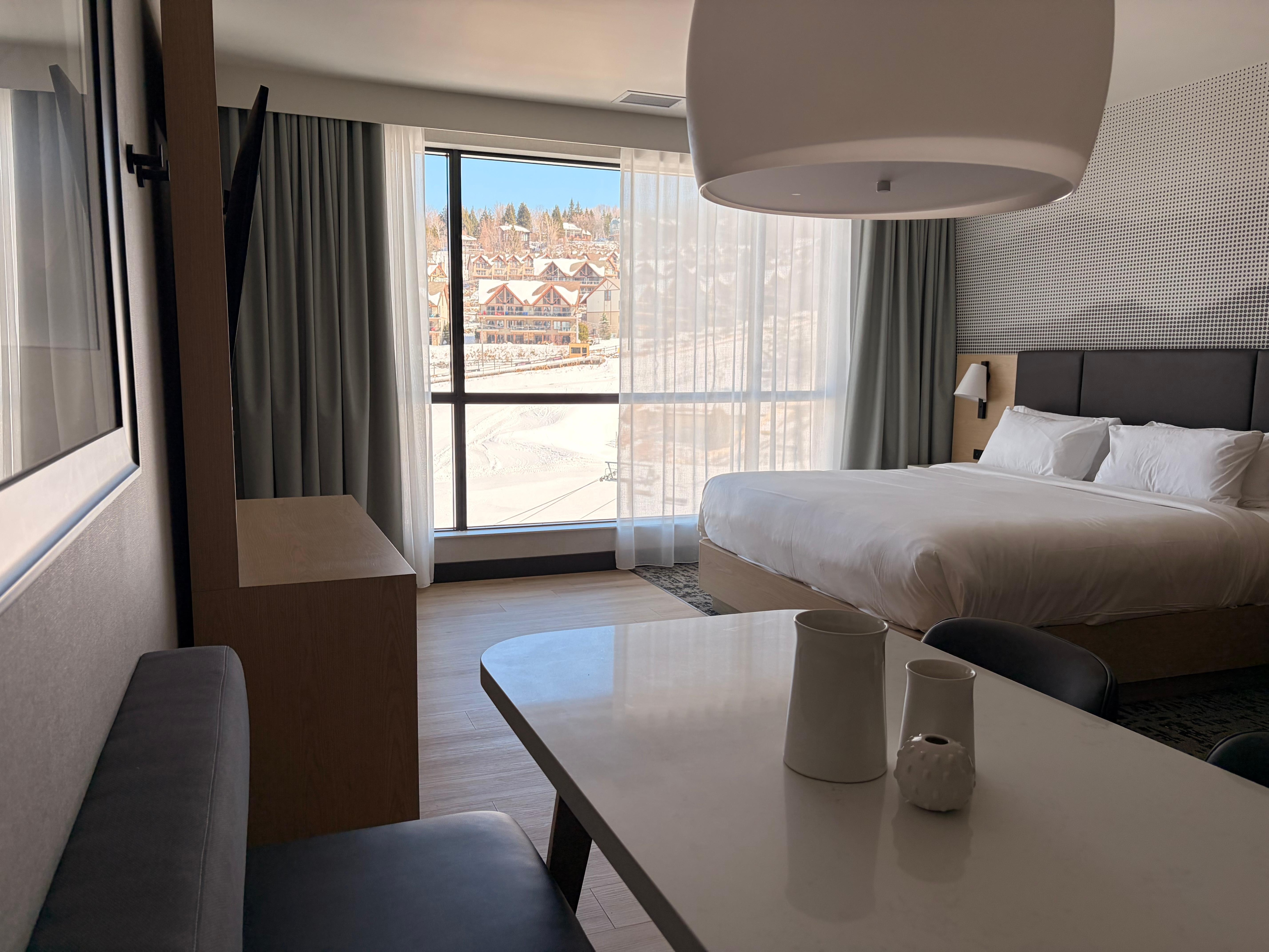True ski in - ski out location with secure ski and bike locker room right off the underground parking garage. The suite room was huge! Our favorite amenity, besides to awesome skiing, was the outdoor heated pool and huge hottub, next to the massive sauna.