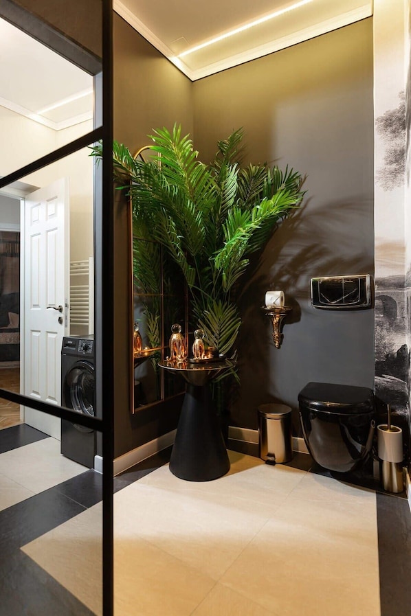 • The apt. includes 2.5 fully renovated bathrooms with 2 showers, a washing machine and all required amenities and toiletries.