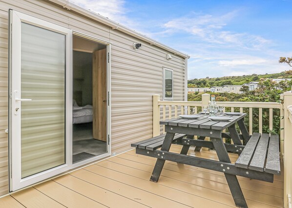 Large 12ft-wide caravan with one double with en suite W.C. and one twin. Family shower room. open-plan living space including lounge, dining room and kitchen. Outdoor decking with seating to take in the magnificent views.. Water’s Edge Leisure Park is an idyllic getaway retreat for couples and mature families seeking a quiet escape from the hustle and bustle of daily life. Perched on the edge of the Teifi river estuary with direct access straight onto a soft, sandy beach, the park is surrounded by panoramic views of Cardigan Bay and the Pembrokeshire National Park.