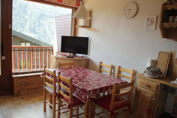 This delightful property provides cozy accommodations for up to 4 guests in the scenic Vonnes area of Châtel, France. The flat features a well-lit living room with a flat-screen cable TV, a bedroom with a double bed, a double sofa bed in the living area, and bunk beds conveniently located in the entrance area. The balcony offers stunning mountain views, perfect for relaxing after a day of activities. The property includes a ski locker, an outdoor parking space, and is pet-free. Guests benefit from free shuttle services in high season and complimentary access to the Portes du Soleil Multi Pass, offering activities and discounts for an enjoyable stay. Nestled in the Jordan residence, this flat is ideally located just 900 meters from the Super-Châtel cable car, making it a great choice for winter sports enthusiasts and summer hikers. The village center is 800 meters away, with shops and restaurants within walking distance. The flat's modern kitchen is fully equipped with an electric hob, fridge, freezer, dishwasher, oven, microwave, coffee machine, kettle, and toaster, offering all the essentials for a comfortable self-catering experience. Additional amenities include a separate bathroom with a shower, a WC, and elevator access. Optional services, such as Wi-Fi rental, bed linen and towel hire, and final cleaning, are available for added convenience. With its blend of comfort, location, and amenities, this property promises a memorable alpine retreat. Note: The tourist tax will be collected at the property and is not a part of rental.