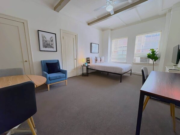 Our furnished studio features a kitchen and bathroom plus reliable WiFi — all set for your comfort and convenience.
