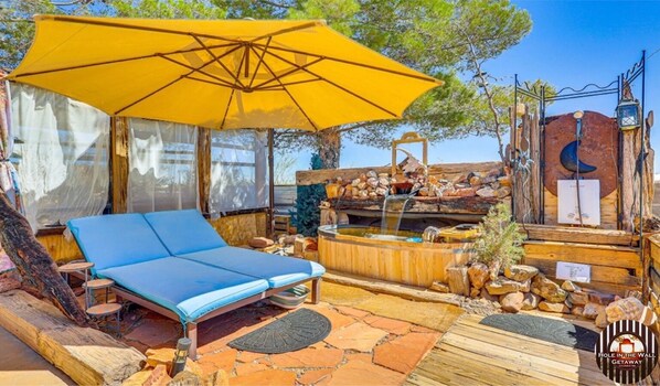 Pershing Heights offers a serene retreat, surrounded by desert views and city lights of Palomas, Mexico. Unwind in the hot tub or sleep under the stars on an inflatable queen bed. With high-speed fiber optic WiFi, a library/movie room and shared kitchen access with your host.