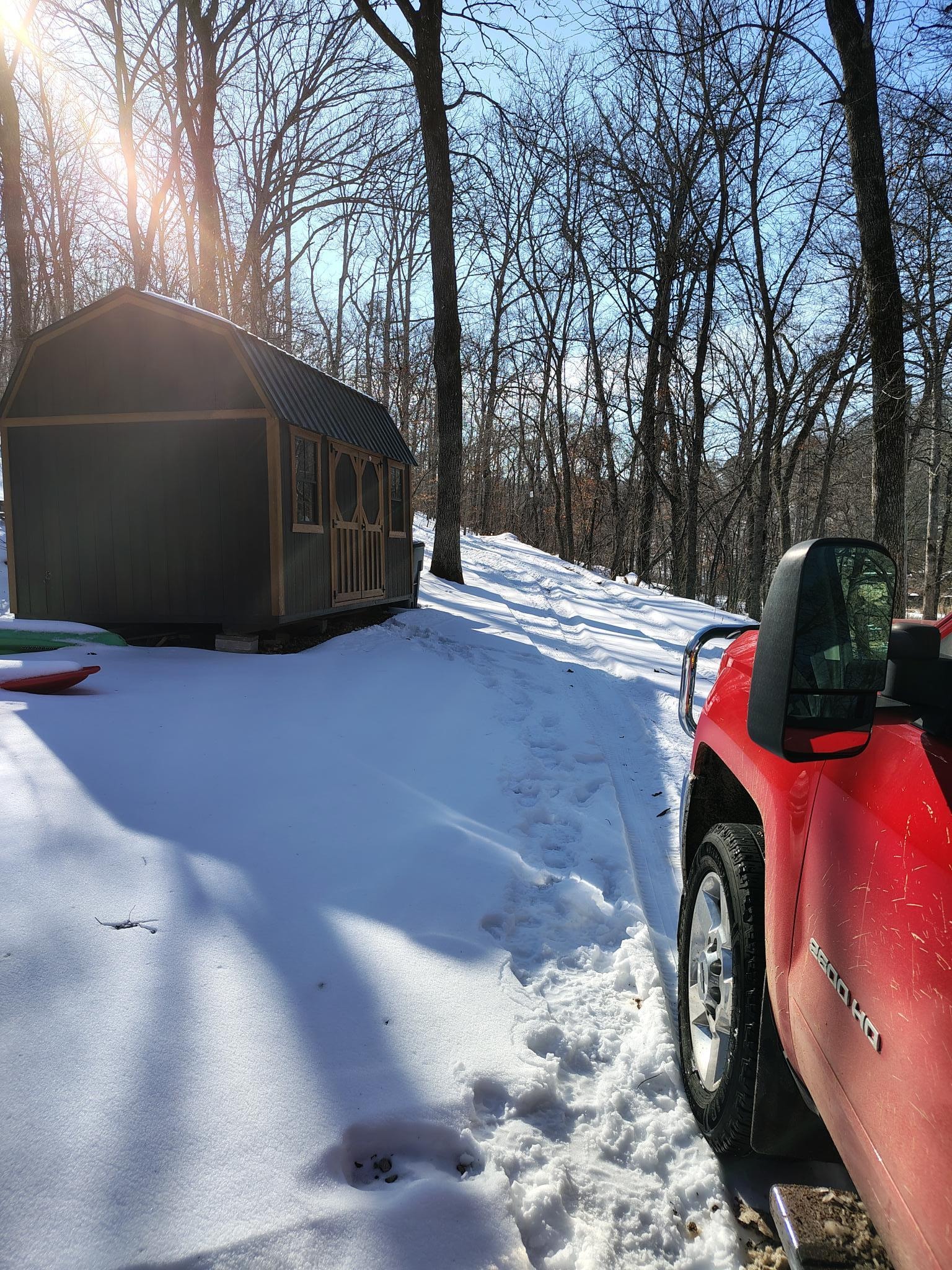 -- Low profile vehicles and motorcycles can make it BUT are not ideal and are not recommended due to the rocky driveway and hill. AWD and 4x4 are recommended especially during the winter months incase of snow or ice.