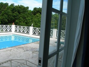 Villa with large pool, screened terrace overlooking Caribbean.