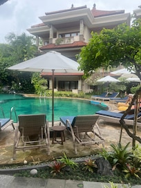 Parigata Resort & Spa sits right on Sanur Beach, offering a quiet escape from everyday life. Guests can book aromatherapy treatments or facials at the spa, enjoy breakfast with pool views at Flamboyan Restaurant, or simply relax beside the outdoor pool.