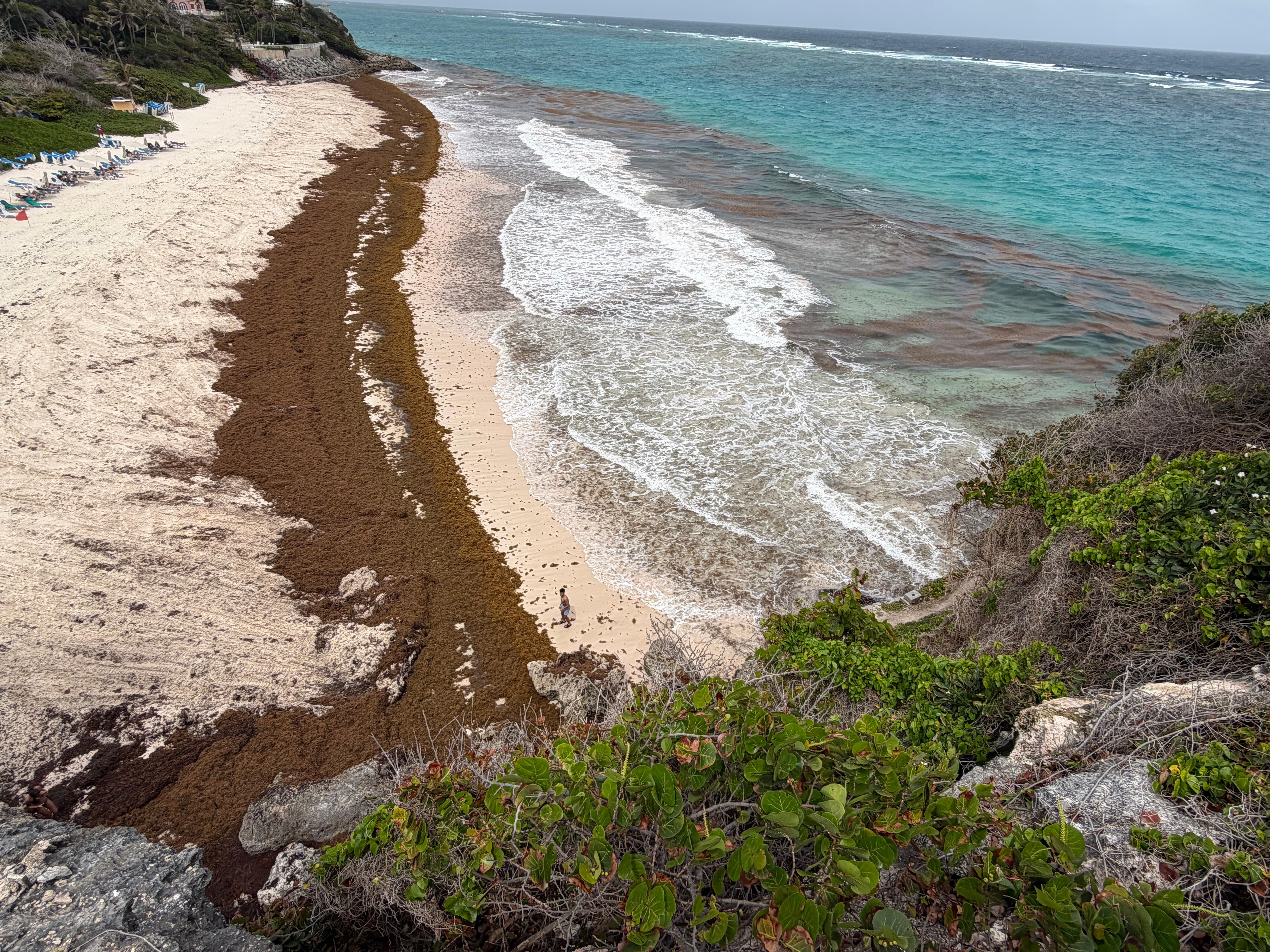 Beach is small and covered with seaweed. Pools are decent.