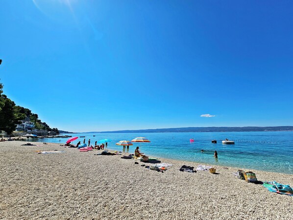 *SEE VIEW AND TERRACE WITH SHADOW *TWO BEDROOMS AND TWO BATHROOMS *IDEAL FOR FAMILY WITH CHILDREN*NEAR BEAUTIFUL PEBBLE BEACH, SUITABLE FOR CHILDREN *PRIVATE ENTRANCE *BEACH BAR *EQUIPPED WITH ALL NECESSARY UTENSILS FOR A LONGER STAY *FREE USE OF KAYAK *DAILY TRIPS TO ISLANDS *RENT-A-BOAT *RAFTING AND WATER SPORTS *NEAR HISTORICAL TOWNS AND NATIONAL PARK *TOWELS, BED LINEN AND FINAL CLEANING INCLUDED IN PRICE *WELCOME DRINK*BIG SMILE *