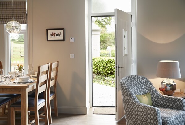 Enjoy a walk in the rolling landscape and then come back to your welcoming holiday home to relax. Stow your walking gear or bicycles in the handy store room, then wander into the spacious open-plan living area and enjoy the warmth from the wood-burning stove There’s underfloor heating in the main living areas to keep you cosy too. The whole property has been recently refurbished to give you contemporary comforts throughout.