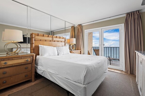 Bedroom 1: 1 Queen bed, TV, direct balcony access with private bathroom.