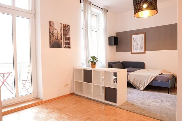 FullHouse | Halle | AB7 Medium Deluxe | Balkon provides a garden and more. Guests can connect to in-room WiFi.