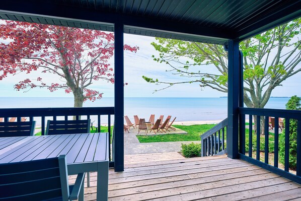 This newly renovated, 4-bedroom, 2-bathroom beachfront cottage is just steps from our private beach, making it the perfect choice for your next getaway. Spend the day enjoying the waters of Lake Erie and end it relaxing by the fire with your feet up!