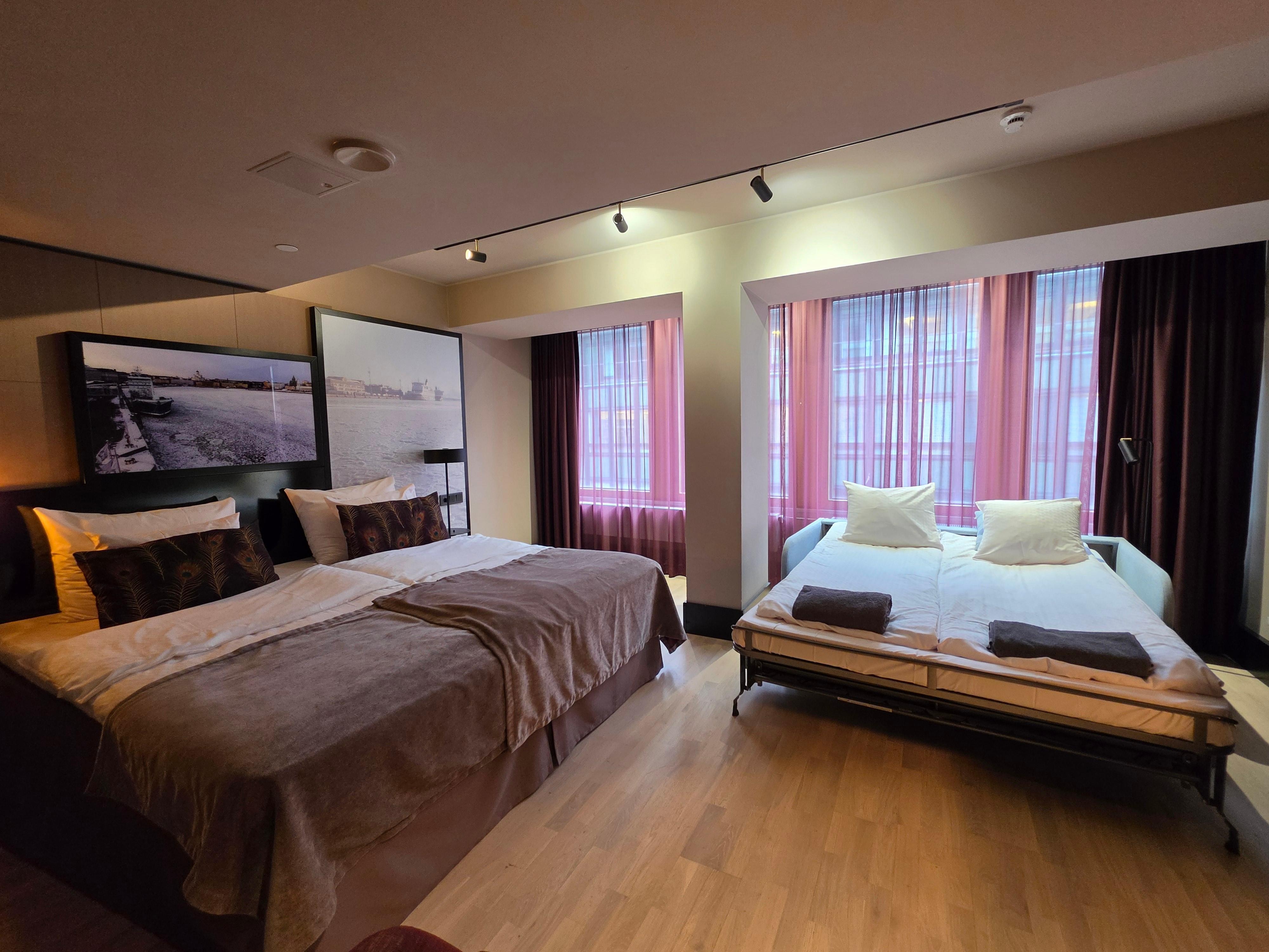 ميني بار وخزنة داخل الغرفة وتجهيزات عازلة للصوت ومكواة/لوح كي