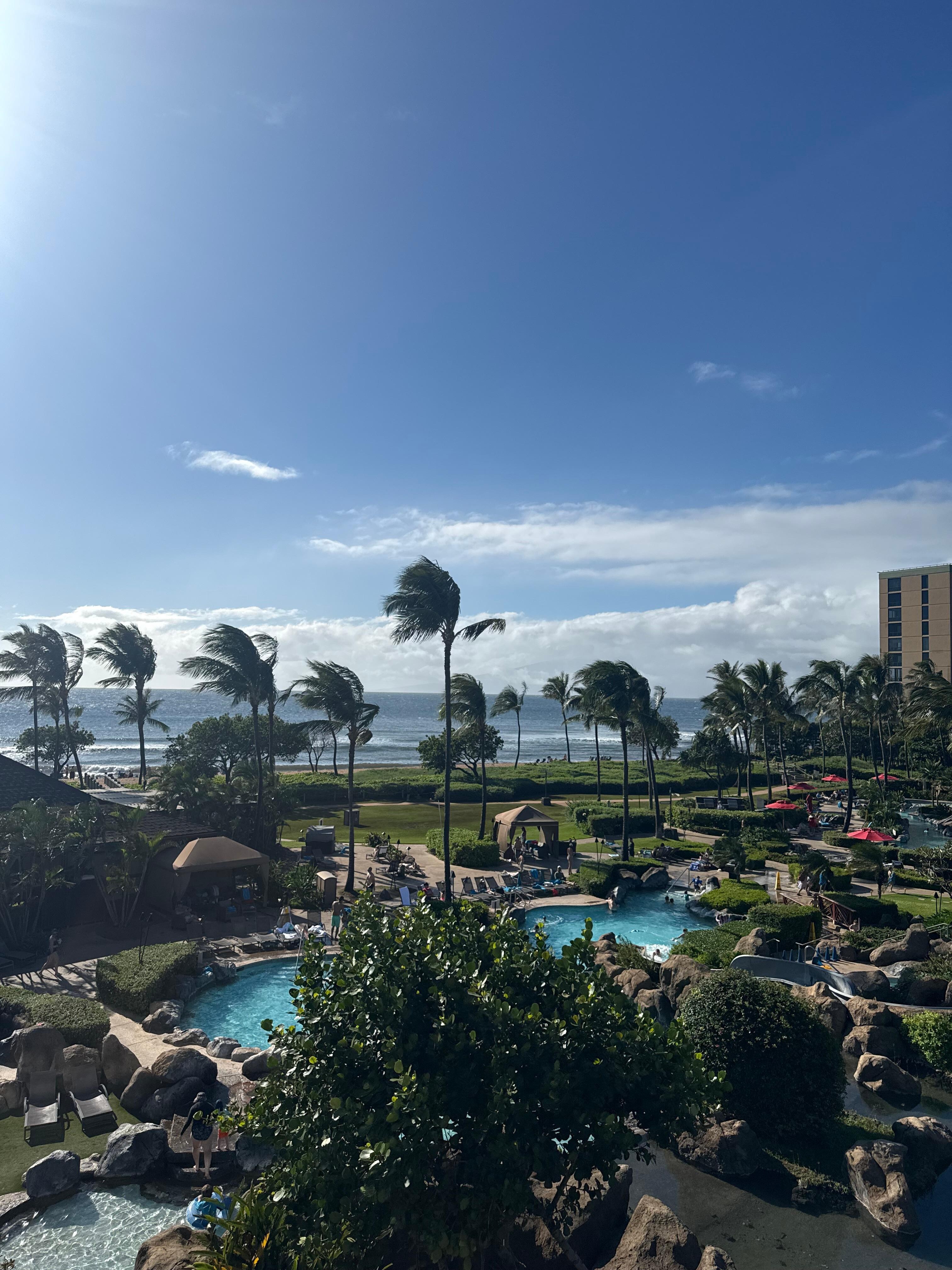 #350 Hokulani overlooks the waterfall pool and waterslide. All the pools at the resort are visible from our spacious L shaped lanai.