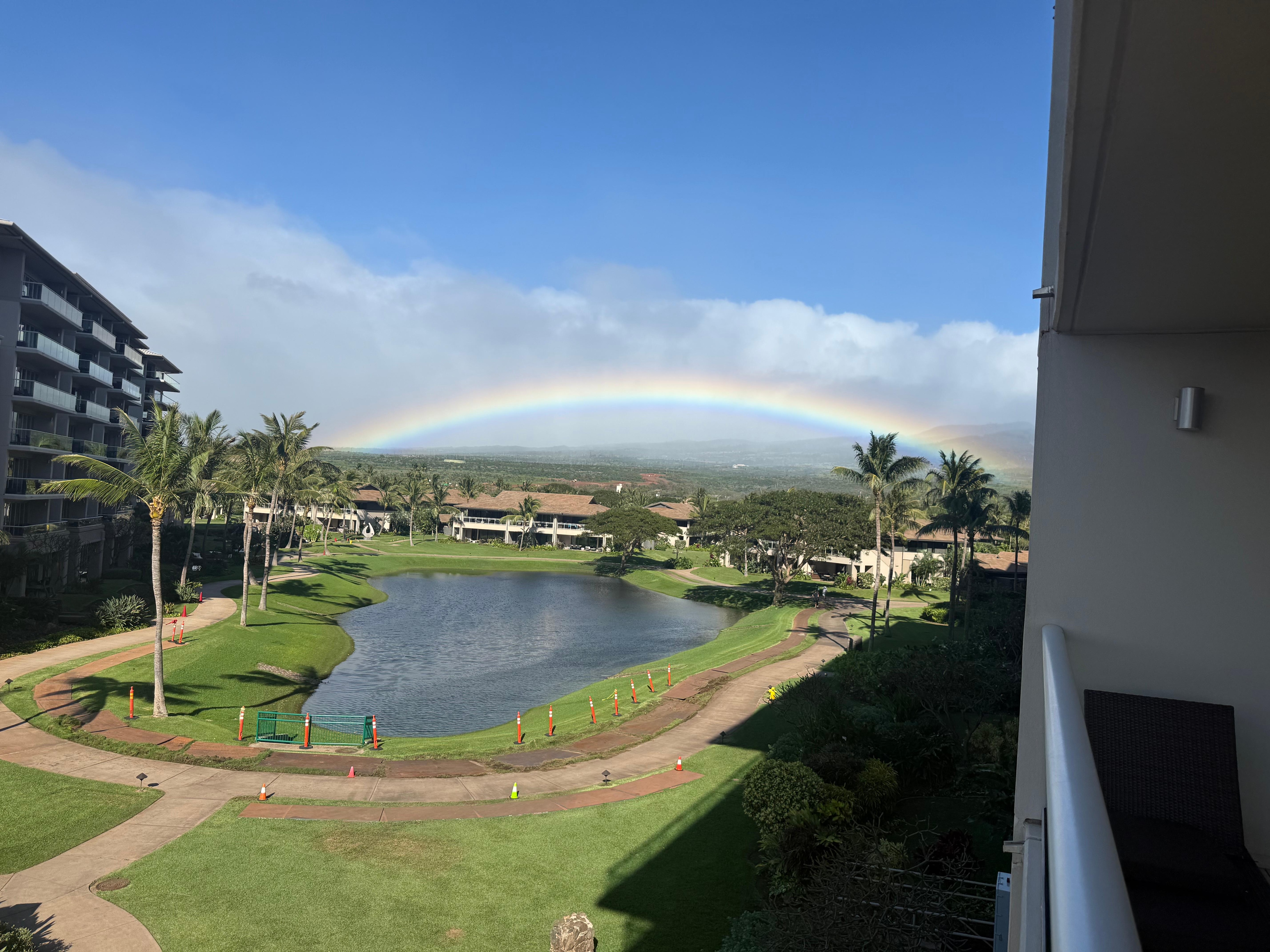 The view from the condo and Lanai is ocean beautiful grounds and gorgeous rainbows.