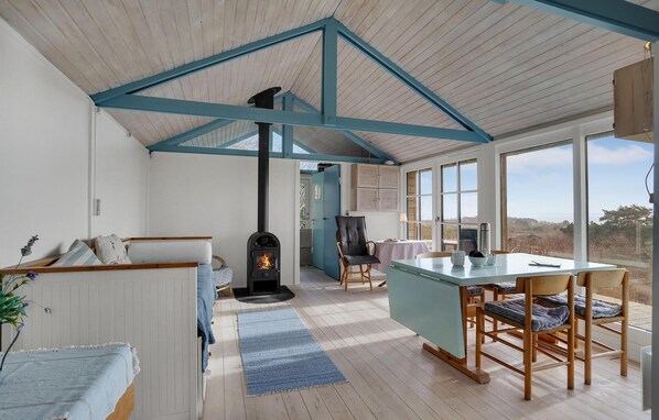 Arrive here with your small family or a couple of friends and feel at home not far from Røsnæs beach. The cottage invites you to relax, read or play in the spacious living room, with a fireplace. The kitchenette offers you everything you need for quick magic in the kitchen. The large wooden terrace offers you a nice place to enjoy your coffee or tea in the morning and grilled meals in the evening to end the warm summer evening.