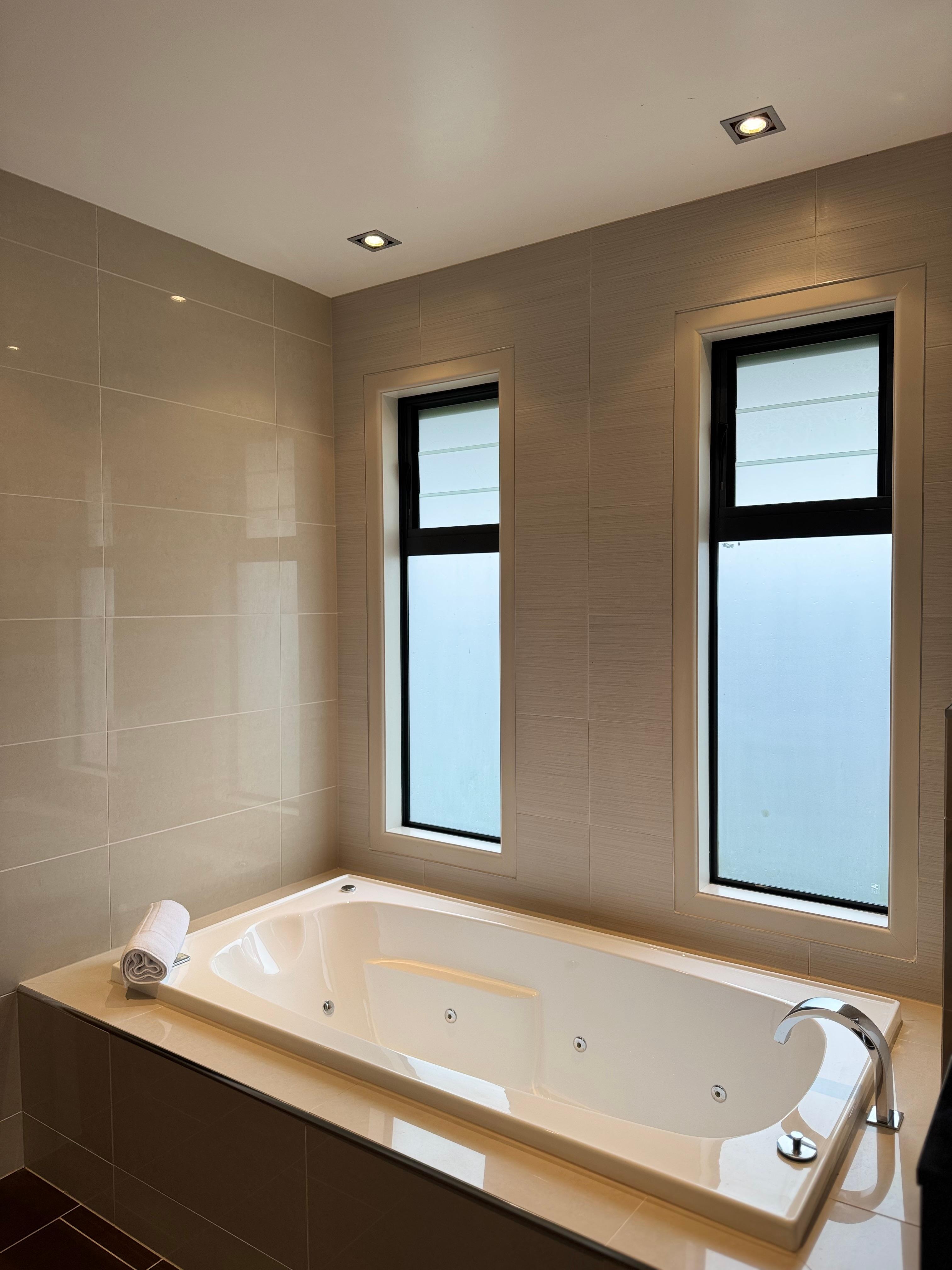 The property was beautiful and had such a great time while we were there, really looking forward to staying again. Only comment would be on the cleanliness of the bathroom as the shower had water marks and soap scum all over the glass, bath hadn’t been cleaned as there were hairs throughout and the toilet and basin had stains.