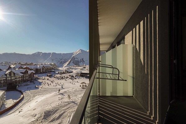 Nestled in Gudauri’s prime neighborhood—right at the base of the gondola lift—this apartment offers unbeatable access for ski enthusiasts. Located within the Atrium apart-hotel, you can step outside, hop on the gondola, and glide back down the slopes with ease. Nearby, an outdoor terrace restaurant serves hot drinks, providing the perfect spot to unwind and take in the stunning mountain views.