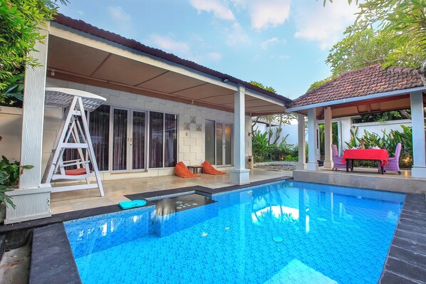 The private pool also was very clean and well maintained including the garden. Its full privacy at the private pool villa . We also enjoyed our private pool and villa decorations with flowers as it was our first wedding anniversary. The dinner served on the occassion was superb and it was a evening to remember. Above all special thanks to Dayu who took great care of me and my wife and made us feel very comfortable. Will be visiting again with my family very soon.