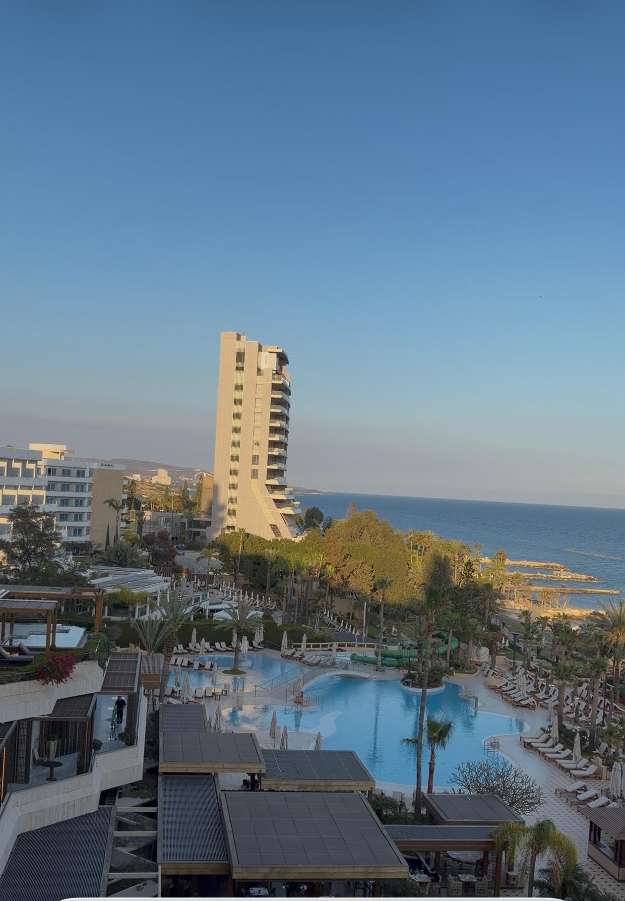 The hotel is gorgeous, the beach, the amenities ... the breakfast was phenomenal (as was all the food)! I am still dreaming of the breakfast selection, so fresh and delicious. The staff was as accommodating and as friendly as we have ever met. Beautiful room and perfect pillows. Just an amazing experience. Limassol is a great area w/ a cool historic district and some delicious restaurants around. We were there in November but still had perfect beach weather. Some of the cutest cats on the island: ) I look forward to returning.