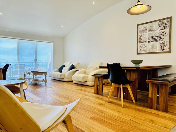 Only a two minute stroll to Mountjoy Parade, the Ocean Sun apartments, with their coastal hues and sensational sweeping views, guarantee an exceptional beach holiday. This newly renovated two bedroom unit sleeps 6. Newly renovated, it has been stylishly and thoughtfully fitted out with quality tasteful furnishings and appliances. Brand new Siemens Dishwasher, large family sized Electrolux fridge, and Kitchenaid coffee machine for enjoying your morning brew comfortably with a 5 star view. Upstairs is open plan living with brand new Tasmanian oak flooring, sundeck with outdoor setting and gas BBQ. Downstairs are two bedrooms with newly installed carpet, modernised ensuite and combined laundry/bathroom complete with large spa bath and brand new appliances.
