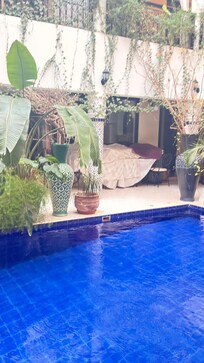 Soir de Marrakech captures the city's vibrant spirit near Jemaa el-Fnaa. Travelers enjoy continental breakfast and manager's reception treats, then relax at the indoor pool with cabanas and sun loungers. The rooftop terrace offers a perfect vantage point for the surroundings.