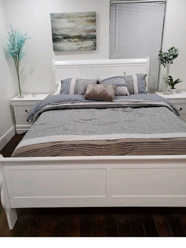We put a lot of love into this place. The place has a lot of natural lighting. The open kitchen and living room concept design will make you feel very free. The modern design will allow you to feel relaxed. Most lights at the place are dimmable. Allowing you to set the mood just right! There is an electronic fireplace perfect for those cozy moments. The large master bedroom has a full bathroom. Each room has queen-sized beds and closets. You will find four multifold mattress in the closets. The back and front yard are very spacious with plenty of places to sit. The backyard has a gazebo with a dinner table. There is a small bbq and fire-pit. You will love the place!