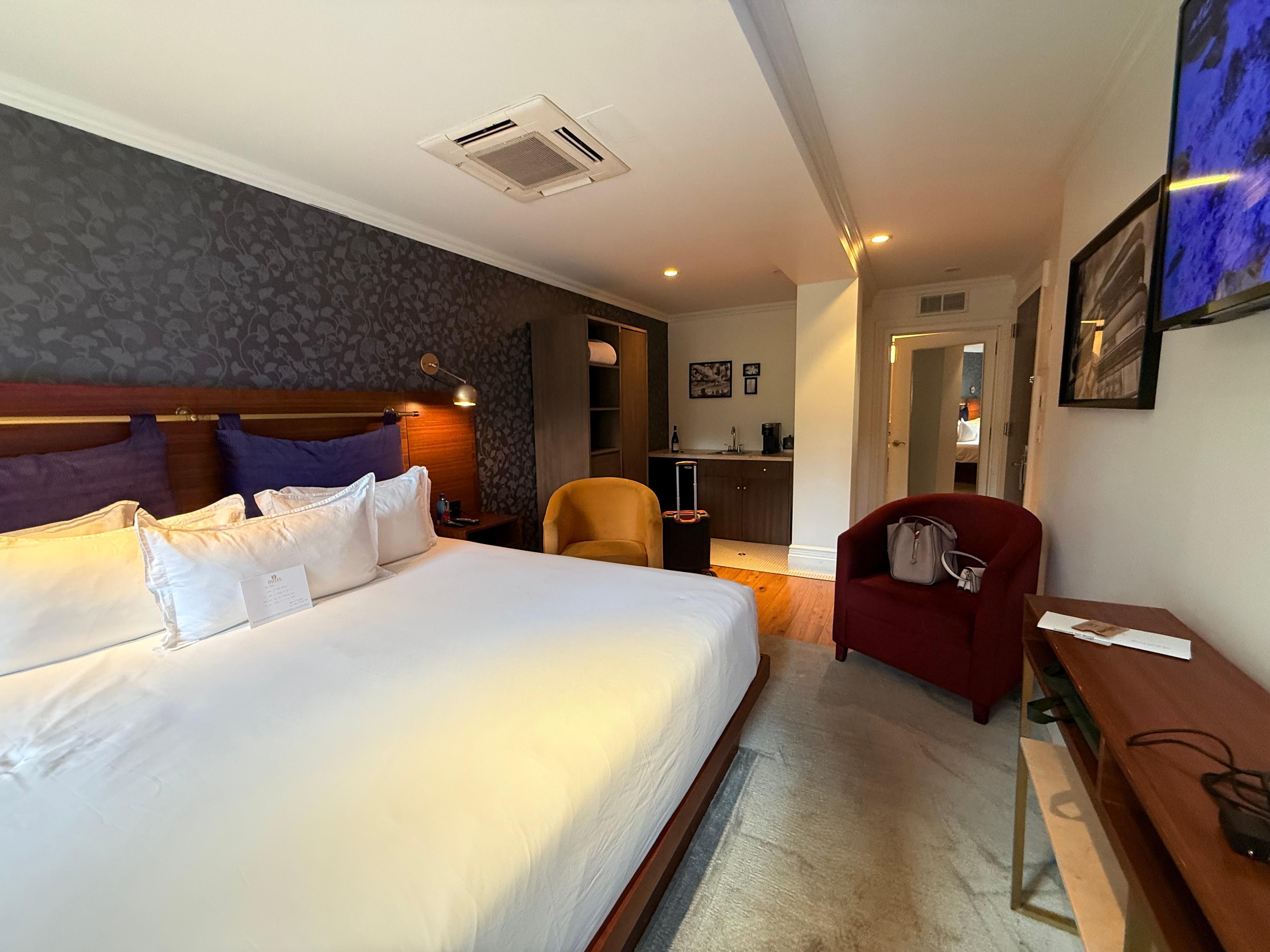 The room was lovely, staff were incredibly friendly and helpful, my only note is if arriving before check-in, they share a “lobby” restroom with the restaurant next door. It’s accessible via the hotel elevator but not an ideal spot to freshen up after a flight. We slept amazing, street noise was minimal with the windows shut and having a small balcony was such a cool surprise. Would absolutely stay here again! So close to Times Square but definitely a quieter street compared to others nearby.