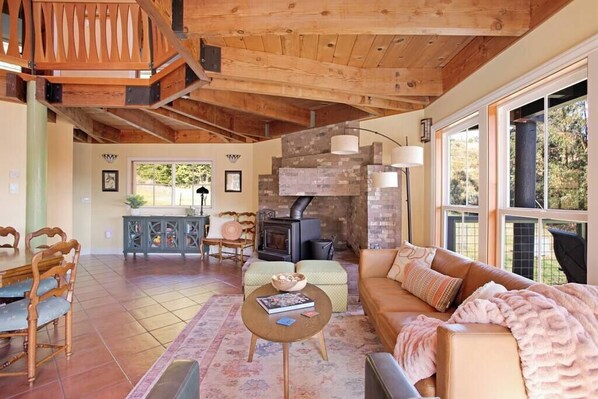 ✔ Sleeps 6 • 3 Bedrooms • 3 Baths ✔ Private spa hot tub with forest + valley views ✔ Wraparound deck with outdoor dining + lounge seating ✔ Indoor fireplace, radiant heat, & skylight-filled great room ✔ Full chef’s kitchen + dedicated workspace ✔ Pet-friendly & family-ready ✔ Minutes to Monte Rio, Guerneville & Sonoma Coast ✔ Private access to close by russian river beach (5 min from property) with 2 kayaks available for use.