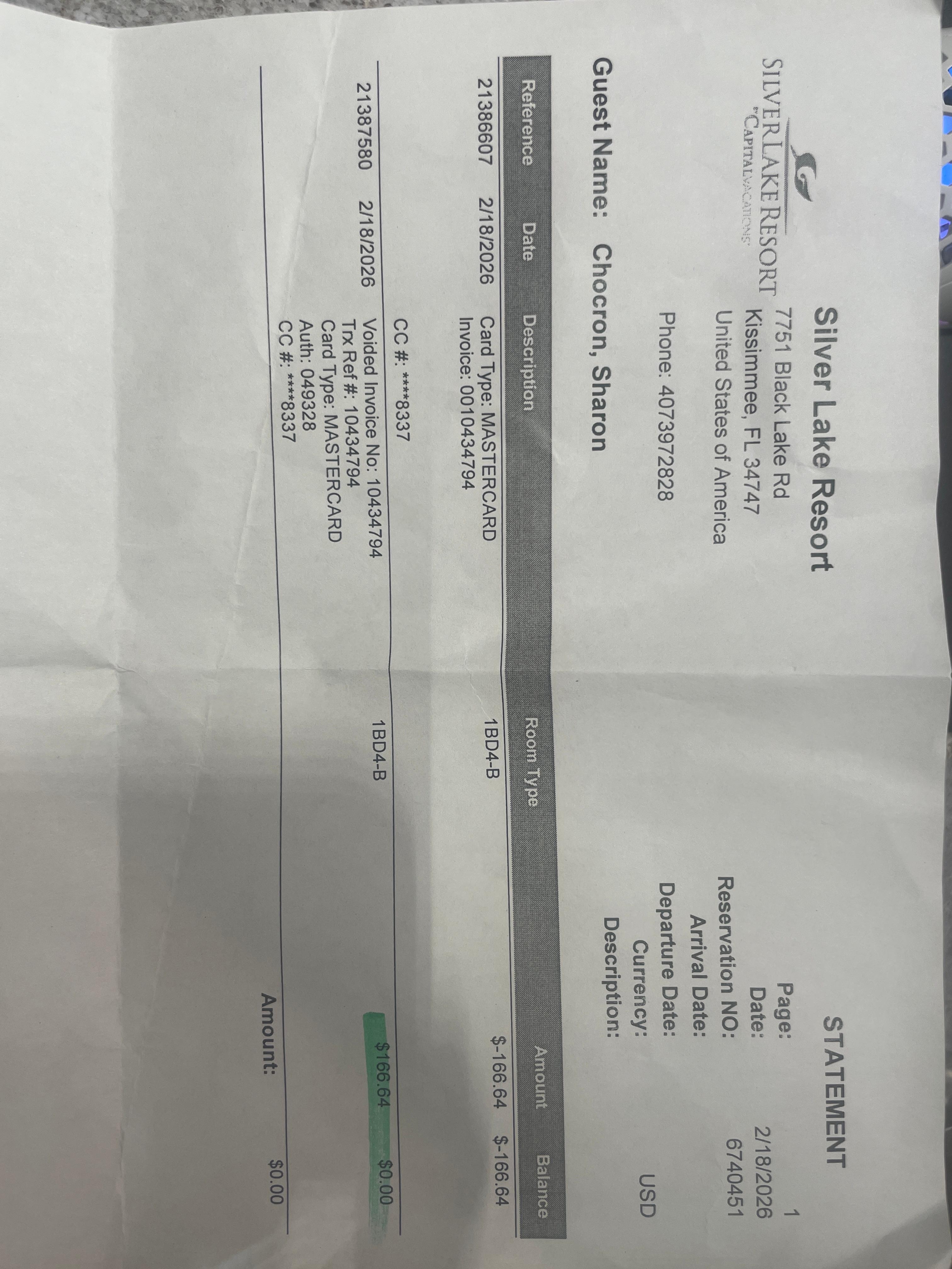 We have included all charges provided to us by the property.