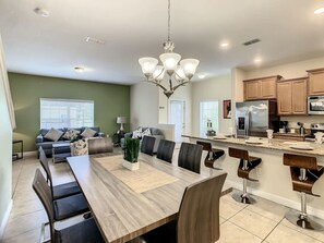 Enjoy our two-story, five-bedroom home, two of which are large master suites, with four-bathrooms, open floor plan, fully equipped kitchen, screened in patio, and private pool. Storey Lake is a premier resort and gated community near all the fun to be had in Orlando. PLUS, the neighborhood amenities are FREE. You can also grab snacks and sundries at the resort marketplace or enjoy drinks by the pool. We are also only a short distance to the community clubhouse. Whether you want to escape for peace and quiet, or would rather explore for a bit of adventure, Storey Lake Dreamy Townhome can fulfill all of your desires. We are the perfect rental stay for your magical getaway!
