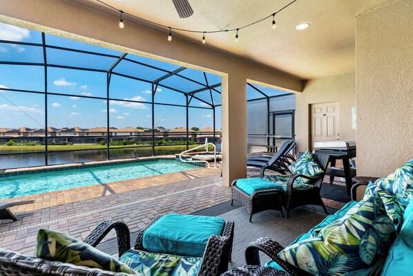 *great outdoor furniture, private pool and spa with handrails
