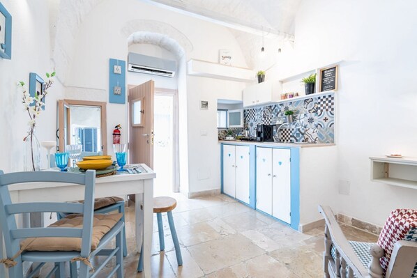 Vico di Ostuni 9 is a typical apartment located in the heart of the charming old town of Ostuni. This charming two-room property offers you an authentic Apulian experience, with a perfect mix of tradition and modernity.