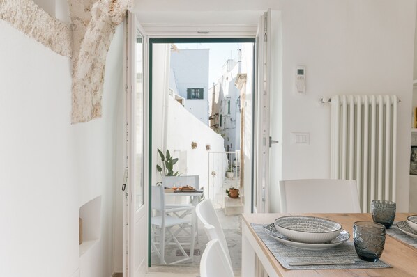 Lovely apartment with seaview terrace in the historic center of Ostuni, a few steps away from the famous Porta Blu and next to one of the most lively restaurants during summer.