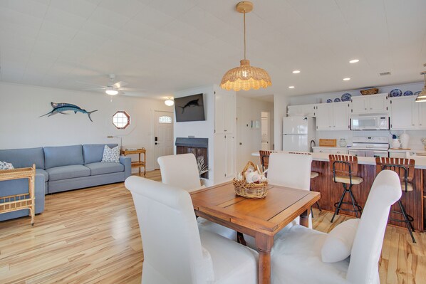 Indoor Living: Smart TV, Pull-Out Couch, Dining Table with Leaf, Ample Breakfast Bar with Barstools, Ceiling Fans, Sonos Speakers