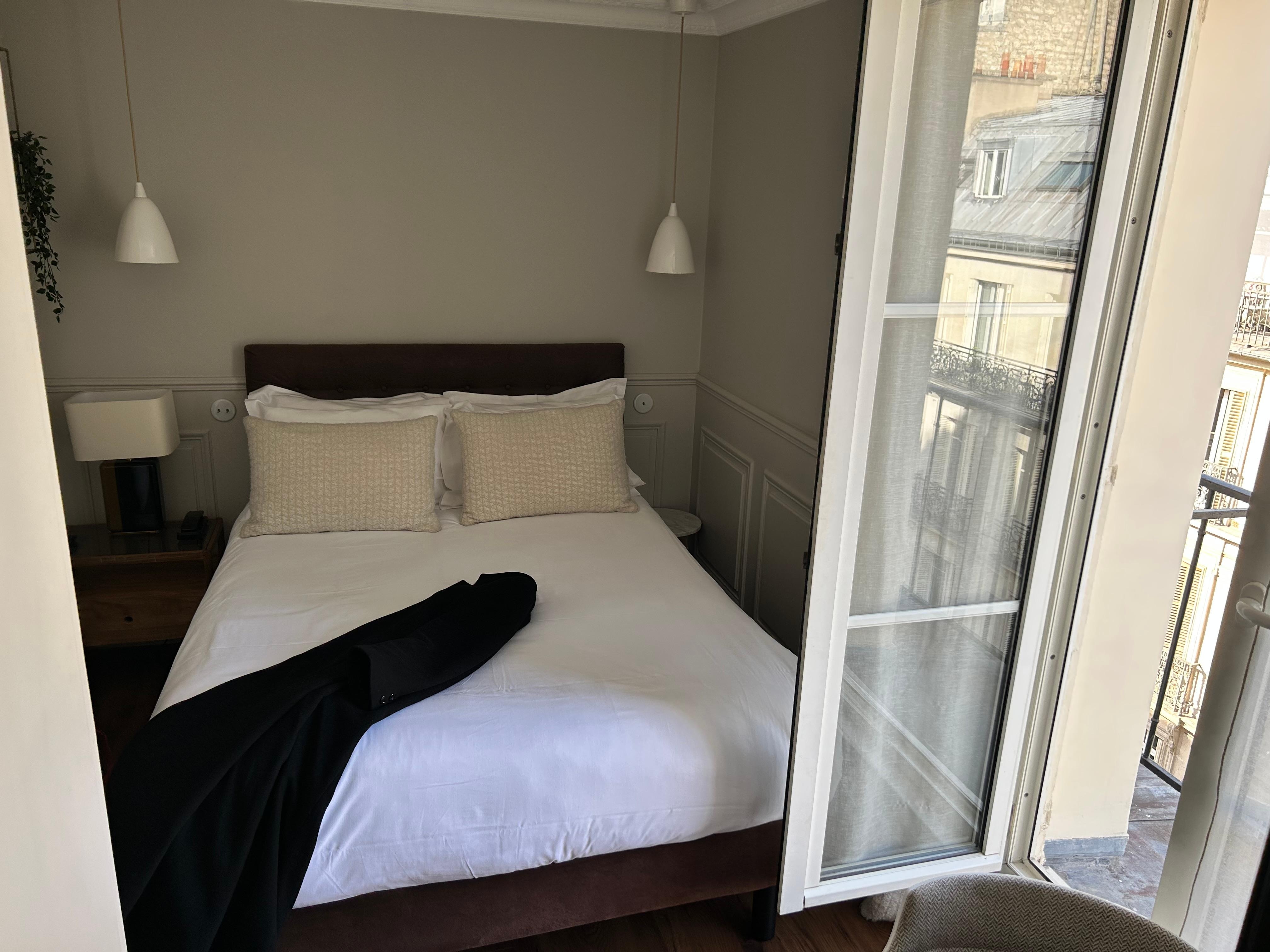Very small room, though nice bathroom. Building under construction with scaffolding outside window (as of April 2024)-- got notice from hotel to that effect day after check-in. Area near hotel is safe and convenient to tourist attractions but rather dull-- much better to stay in Marais.